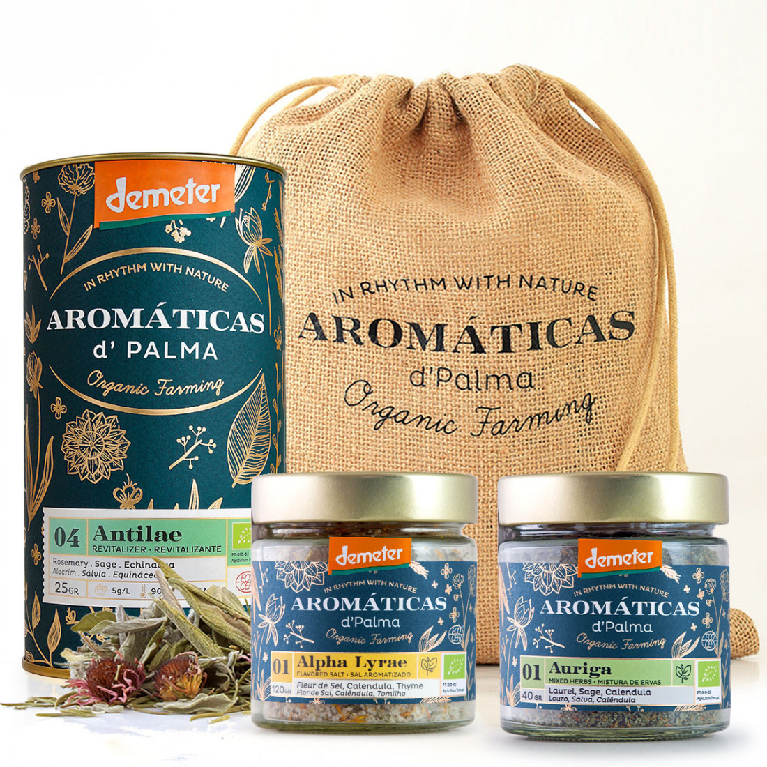 ANTARES - Sal Aromatizado para Pratos de Peixe (Sal Aromatizado)Mistura: Flor de Sal do Algarve, Tomilho-limão e CentáureaCertificados: Biológico e Biodinâmico Peso Líquido: 120 g